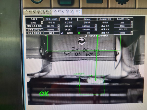 스트로우 정상 부착 여부 검사 시스템입니다.